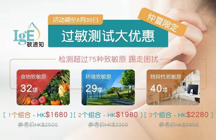 如果该检测中心的整体资质实力过关,那么接下来就得看看它提供的过敏测试专案是否全面或者有可选性,不然的话该体检中心再好也没有选择的意义。目前香港常见的过敏测试专案主要有Faber最新-代免疫球蛋白E(IgE)过敏测试(全面超过150种致敏原)以及IgE敏速知过敏测试( 3种组合随意选择),前者对于湿疹等过敏病具有极高的准确性,至于后者可以准确指出是否对特定致敏源有引起过敏反应,测试结果能够能够找出导致皮肤/呼吸道/肠胃过敏的致敏源头。