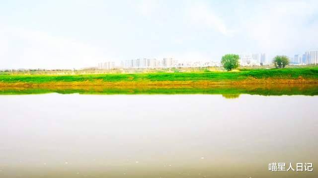 坐在湿地草坪上,最大的感受就是视野真开阔。近看是草坪,远看也是一样。草坪一直延伸到似乎可以延伸到地平线。天边的景色,城市轮廓模糊,笔直的小桥,几棵零星的树木,十分醒目。换个方向看府河对岸,那里的地势也很平坦,中间的某处地势略高,周围是森林,有遮蔽,露出一座码头式的建筑。从方向分析,黄花寮古城就在对岸。据说已有千年历史,至今仍静静地扎根于府河畔。