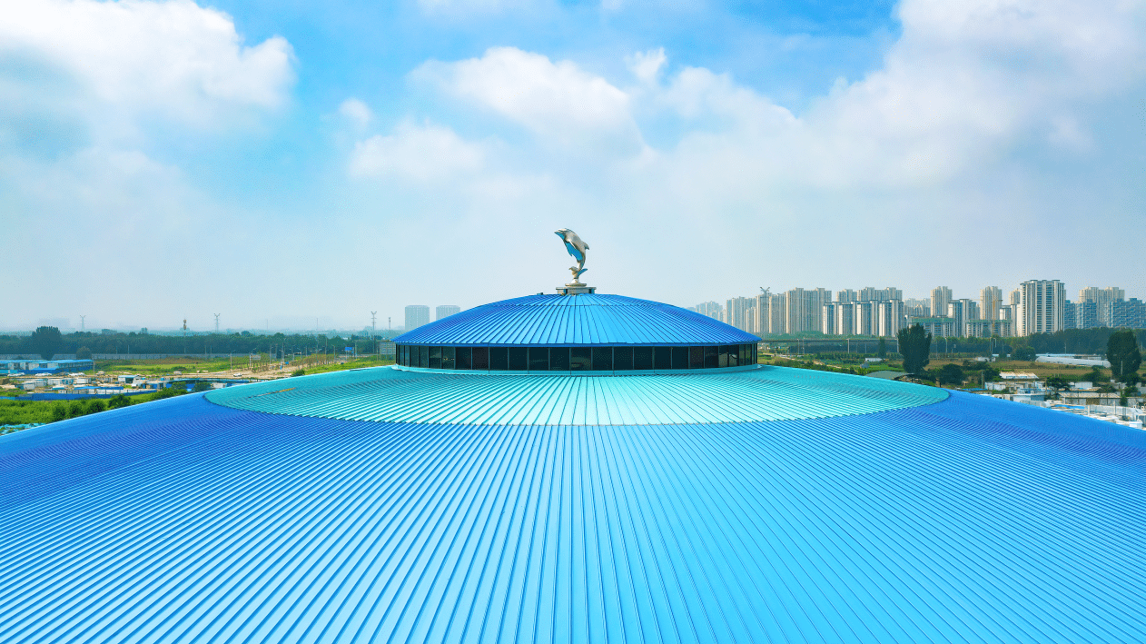 据了解,目前郑州海昌海洋公园的主力场馆之一的海豚秀场屋面装饰工程节点已完成,这意味着园区开业已近在咫尺。