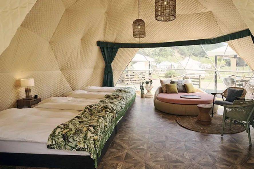 帐篷内没有浴室,木屋带浴室。小朋友一定兴奋不已,大人也能感受远离尘嚣,亲近大自然的时光。