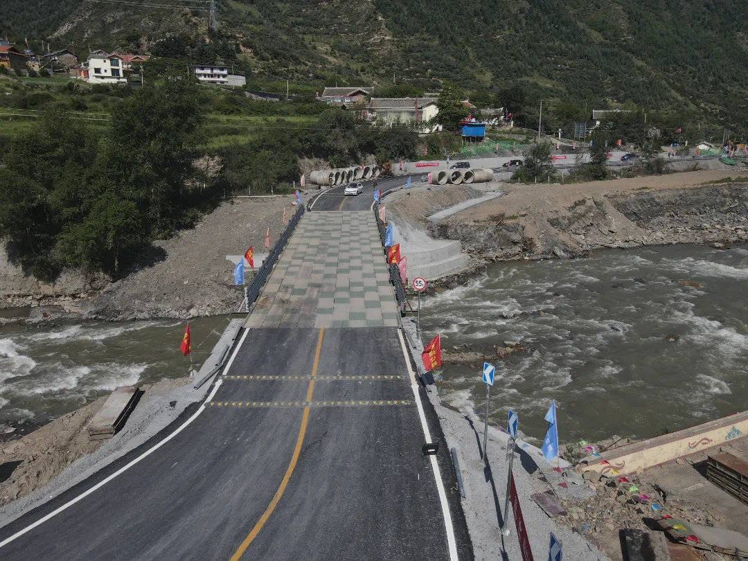国道213线“5.8”松潘县境内青云镇鸳鸯桥山体高位垮塌路段已恢复正常通行。图源阿坝公路管理局