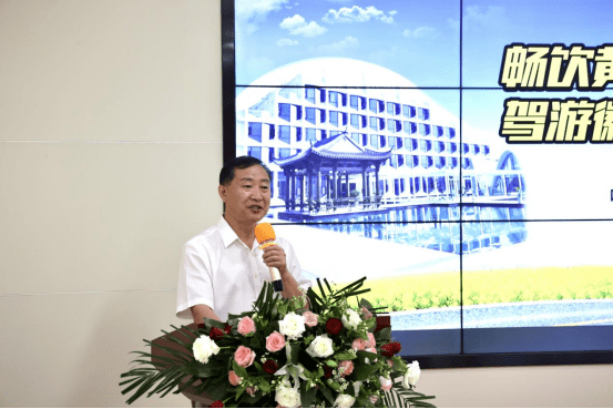 徽州区副区长何建中发表致辞,他介绍到徽州区作为徽文化的发祥地之一,古徽州域名的唯一传承地,历史悠久环境优美,拥有丰富的自然资源和文化资源,以及红色旅游休闲特色资源。希望在于波会长及各位自驾游界的大力支持下,宣传好徽州区的文旅资源以及优质矿泉水资源,“健康饮水、科学饮水”,共同助力徽州区自驾游的发展。