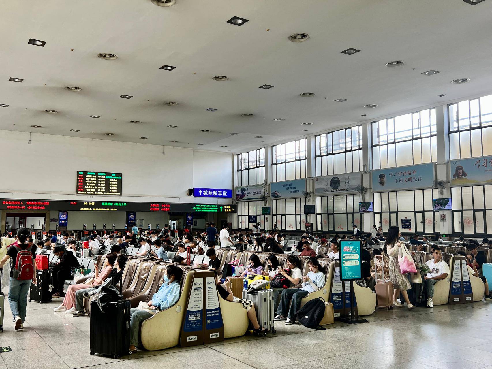 长沙站针对旅客多层次出行需求,充分挖掘运输潜力,力求“能开尽开”。6月21日,长沙站普速场开行普速列车共计153列,加开10列。城际线开行动车组列车284列,加开6列。