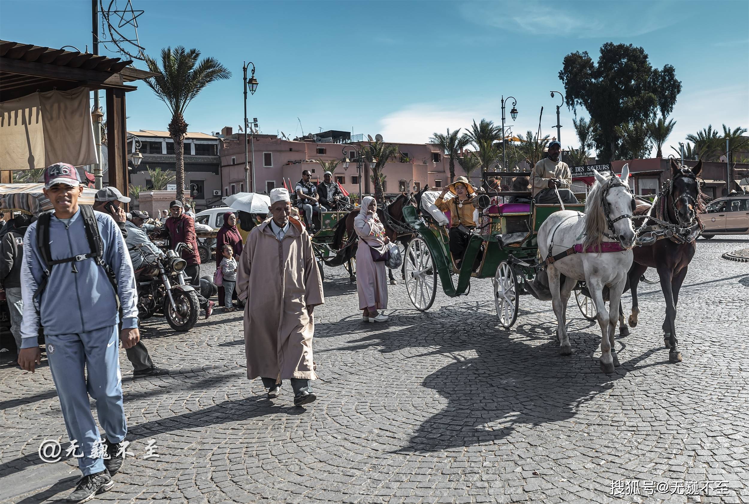 纯种阿拉伯骏马拉着玲珑别致的马车在街头优雅地跺着碎步,古朴典雅的街灯、身着吉拉巴、卡夫坦的柏柏尔人,一幅充满人间烟火味的阿拉伯画卷在眼前徐徐展开。