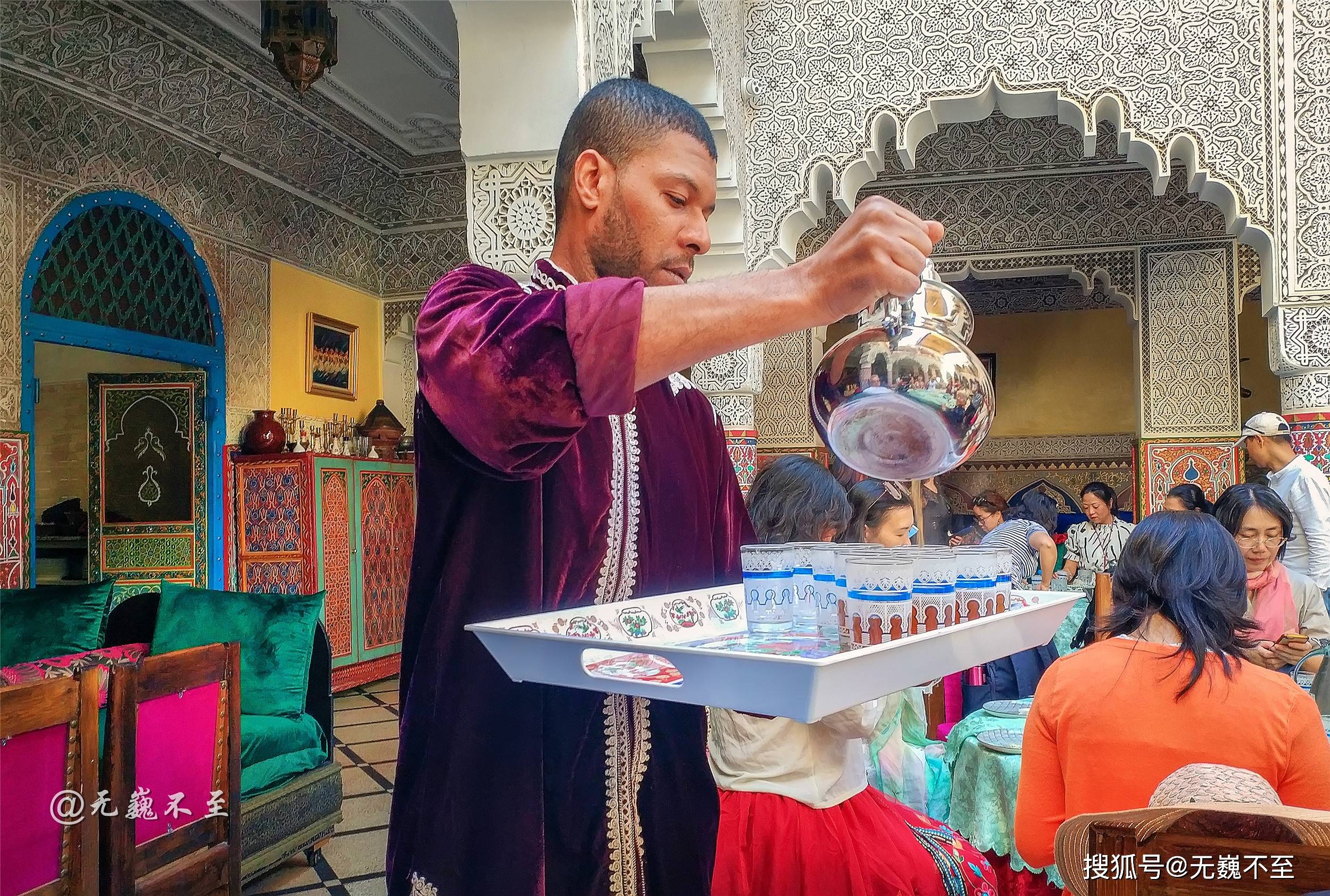 摩餐到此为止了吗?没有!身穿绣边紫袍的店主笑意盈盈的用银壶再为诸位斟上一杯摩洛哥国饮一一中国绿茶加薄荷叶的薄荷茶,既解油腻又清新口腔,这才堪称完美。