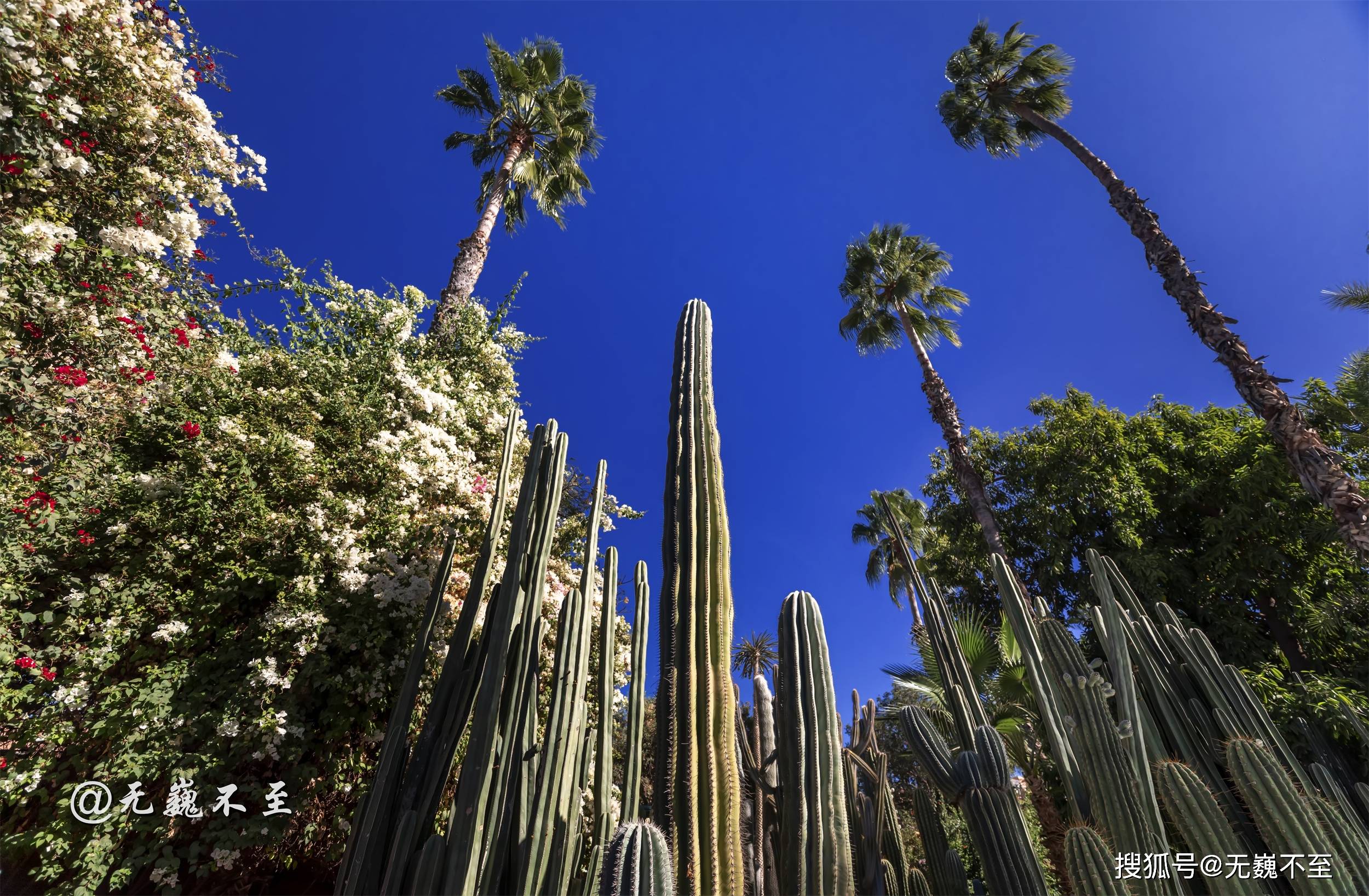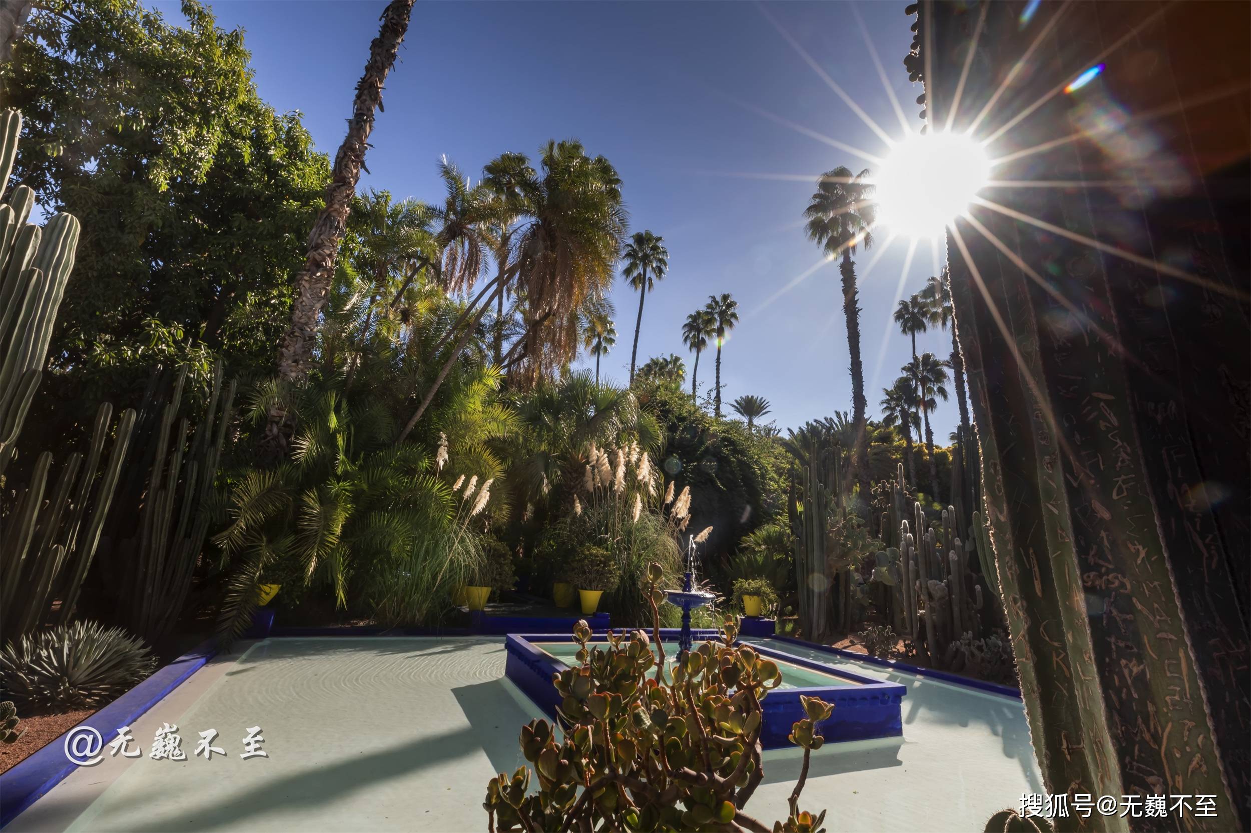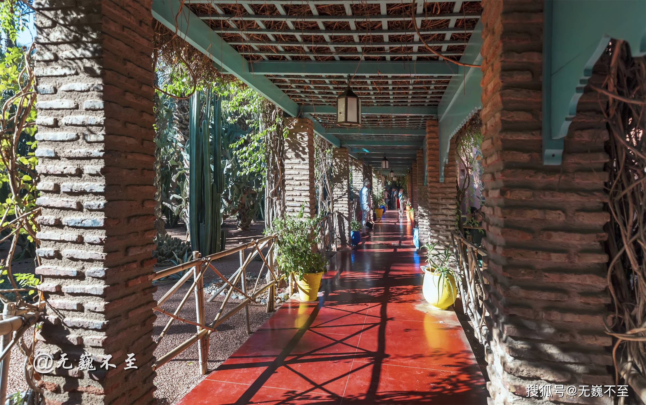 到了1980 年,国际著名品牌圣罗兰创始人伊夫 · 圣 · 罗兰在马拉喀什旅行时,偶然得知这座花园濒临关闭将改建成旅馆,于是他果断出资买下花园并重新投入资金改造,澄碧通透的蓝天、生机勃勃的三角梅、昂扬直上的仙人掌、高大挺拔的棕榈树,花园在新主人的精心呵护下重展新颜,伊夫 · 圣 · 罗兰将其命名为绿洲别墅。