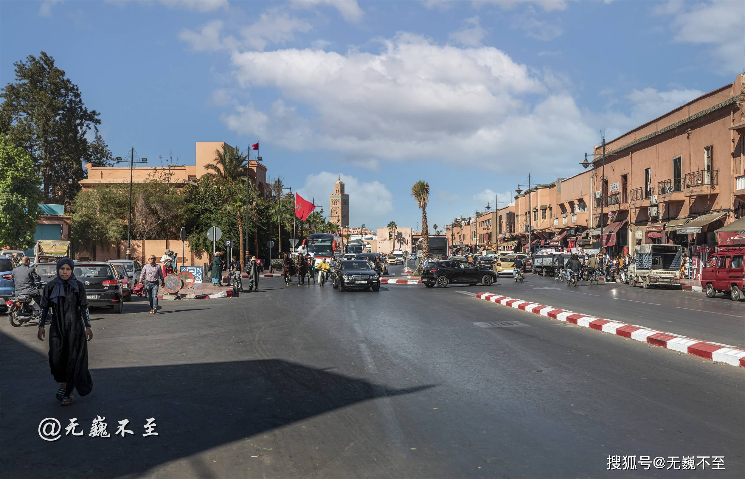 三个多小时后,大巴驶入一座赭红色的古城,它便是摩洛哥王国的著名古都,被称作红色皇城、南部首都的马拉喀什。与欧陆风情较浓郁的卡萨布兰卡相比,马拉喀什总算让人有到了非洲的感觉。