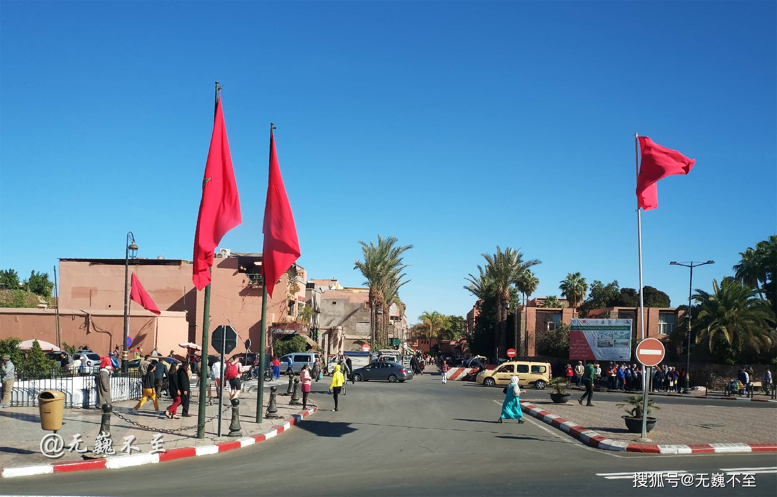仿佛摩洛哥国王巡游的路线和我们一致,到了马拉喀什,街头同样飘满国旗,这就代表国王最近几天在此驻留。