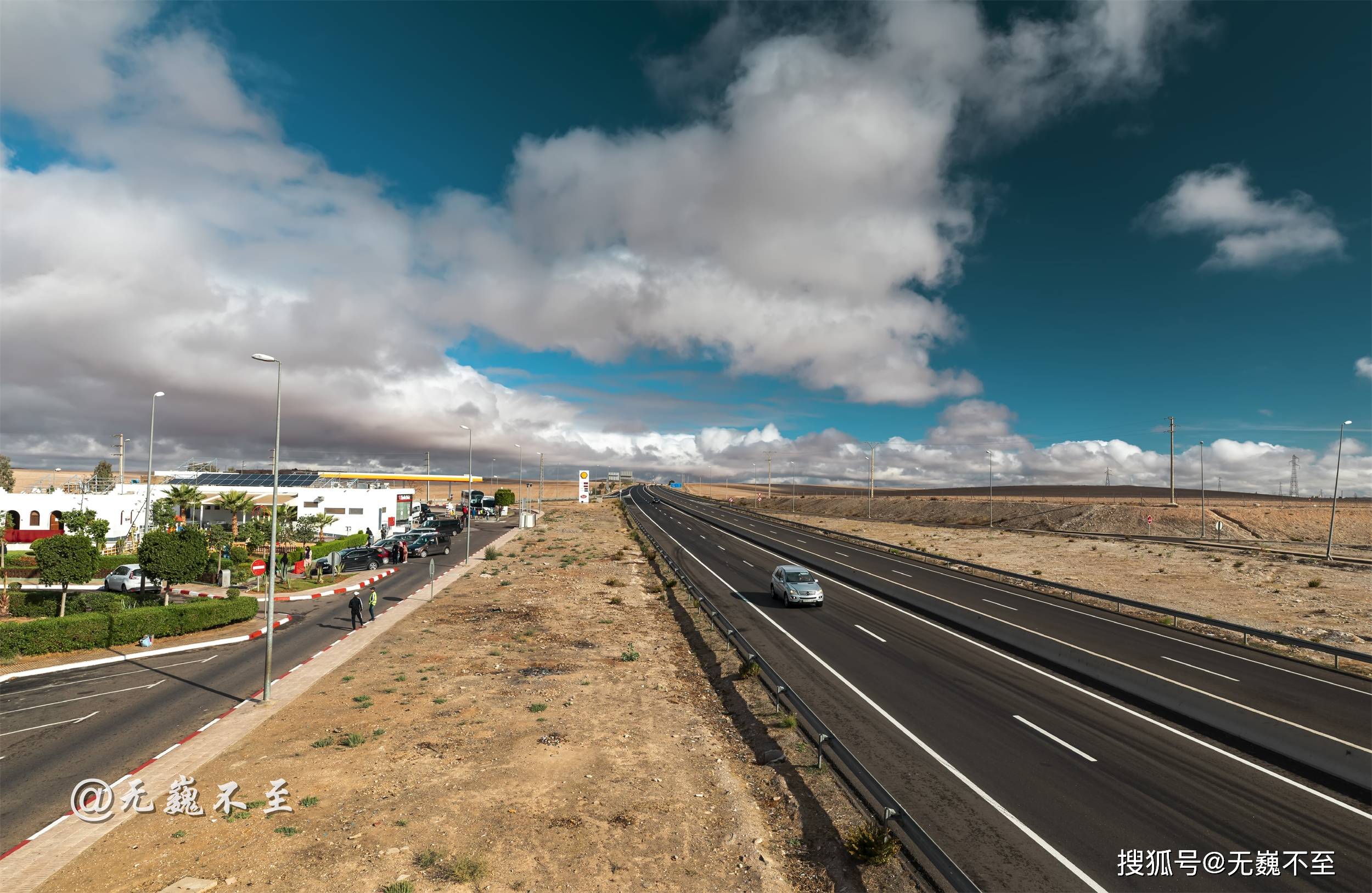 沿着法国人当年修建的N9公路一路南下,风和日丽,路畅车稀,开阔的原野一眼可望到公路消失在天际尽头,不过由于摩洛哥限速检查很严格,司机始终保持着60公里时速平稳驾驶。
