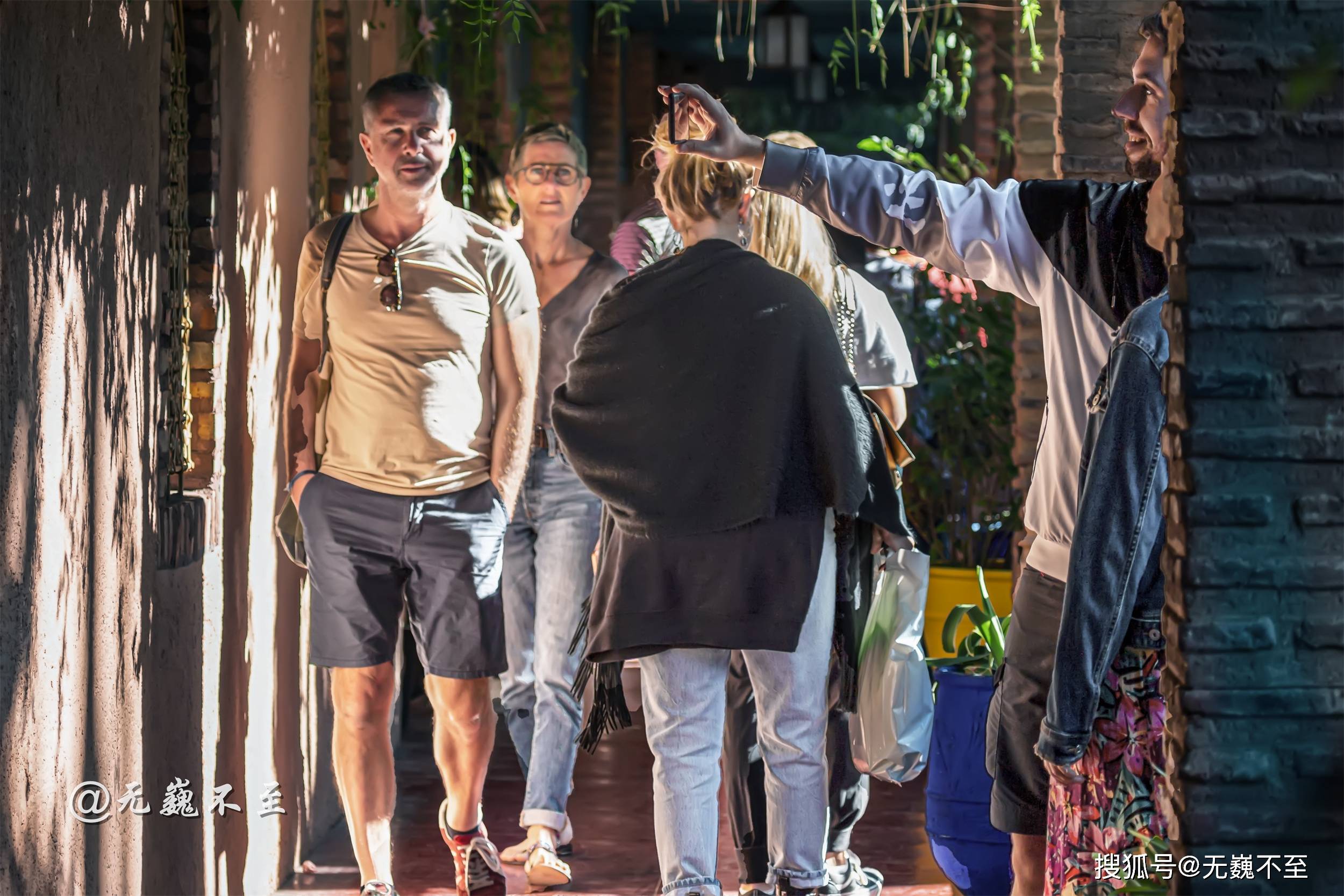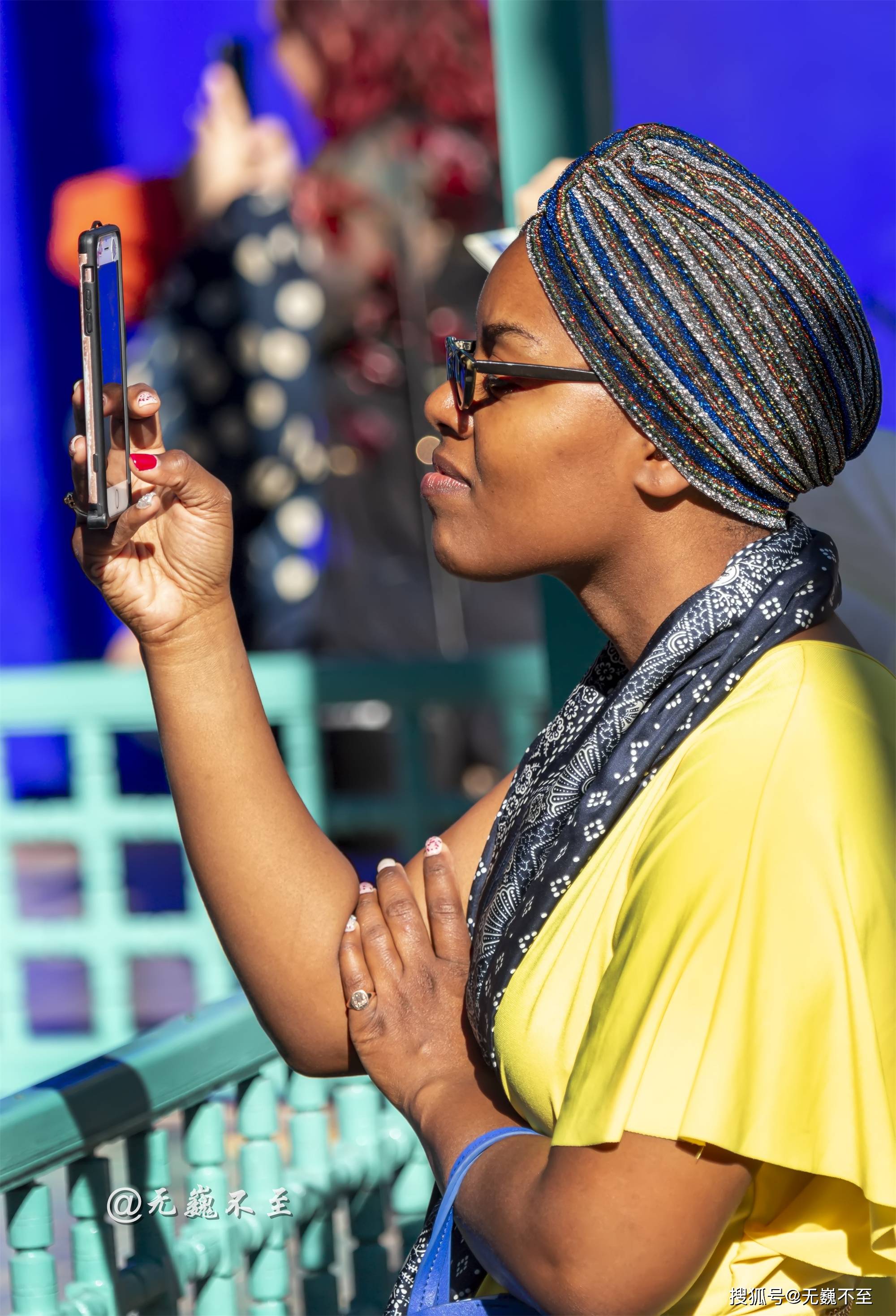 年轻的黑人妈妈抱着一个混血宝宝在蓝色屋子前合影留念,从她的皮包、饰品上都可看到YSL(圣罗兰)的符号,想必是对马约尔花园第二任主人——国际著名品牌圣罗兰的创始人法国时尚大师伊夫 · 圣 · 罗兰的崇拜和致敬吧!