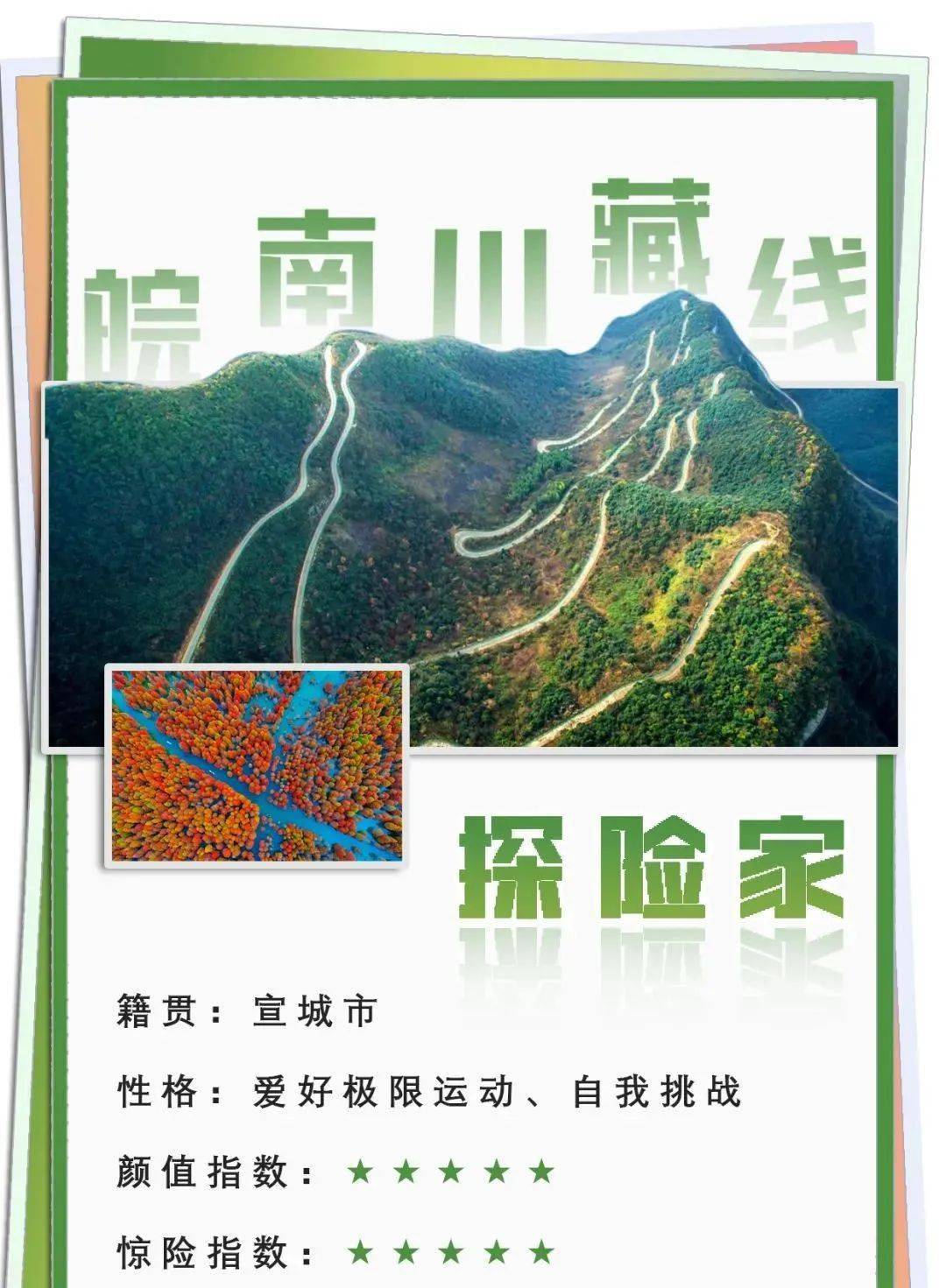 “皖南川藏线”又称“江南天路”,东起宣城市宁国市青龙乡,南起旌德云乐镇,西起泾县蔡村镇,北起宣州区溪口镇,其精华路段约120公里。