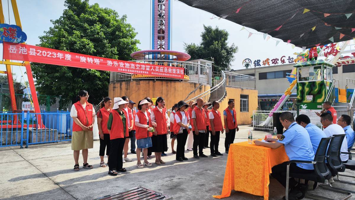为切实提高特种设备应急救援能力,保障暑假游乐场所大型游乐设施等特种设备安全稳定运行,6月20日,岳池县市场监管局在岳池县银城欢乐世界陆地公园组织开展了特种设备应急救援演练。岳池县市场监督管理局总经济师尹雄飞参加演练。