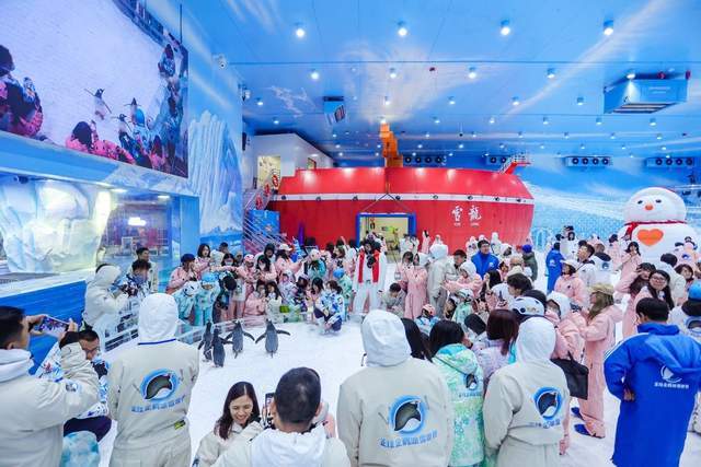 演出中,正佳企鹅冰雪世界的极光和飘雪送来地球极点才有的激情和浪漫,应着现场音乐旋律和氛围。