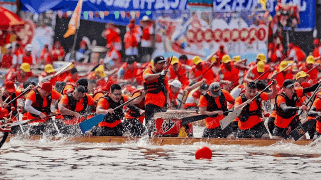 广州国际龙舟邀请赛在中山大学北门广场至广州大桥之间的珠江河段开赛,很多人冒雨观赛,这是一种生活态度。