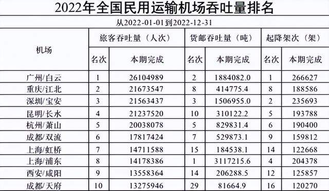 国际航空枢纽方面,2022年,白云国际机场旅客吞吐量达2611万人次,连续三年居全国单体机场第一位。