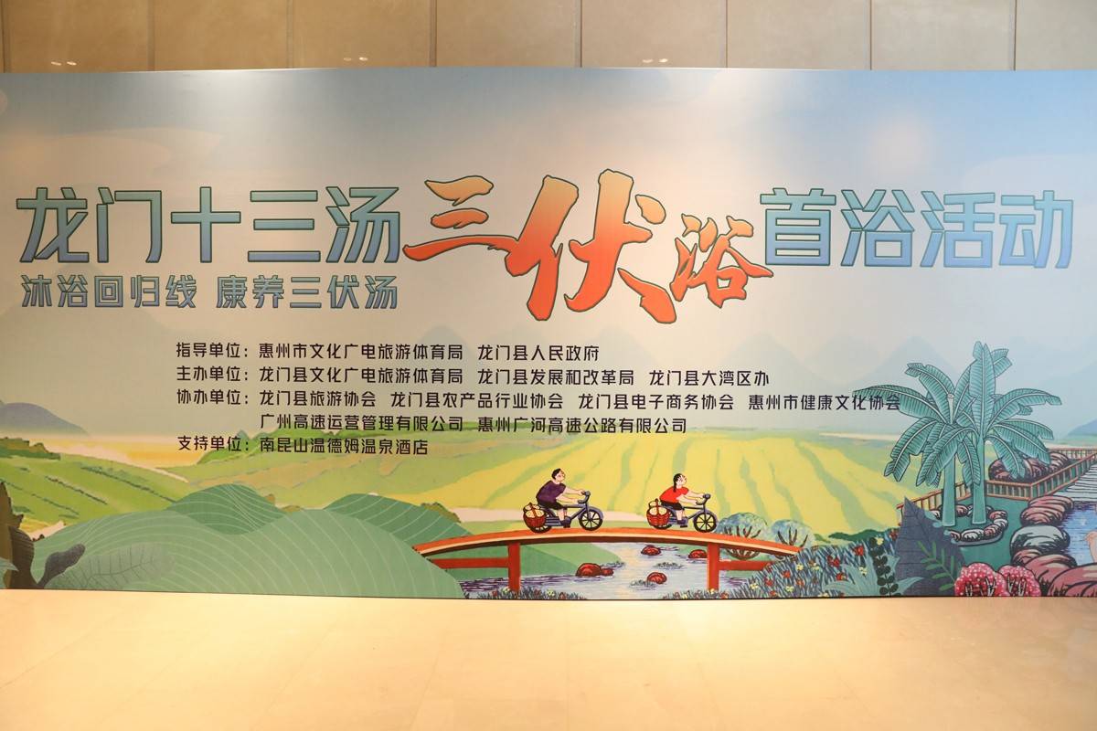 近年来,龙门县利用得天独厚的温泉资源,构筑了“龙门十三汤”区域温泉旅游品牌。目前,全县拥有13处大型温泉旅游企业,其中4家获评国家4A级旅游景区,3家获评中国五星级温泉——龙门县是目前中国五星级温泉最多的县区,成为广东省乃至国内外极具规模的温泉旅游产业集聚区。同时,龙门也是北回归线穿过的地方,每年夏至,太阳在此转身。龙门县利用“天时”“地利”,从2021年开始创新推出“龙门十三汤•三伏浴”产品,推广“冬病夏治”养生理念,成为国内第一个将“三伏浴”康养理念落地实施的县区,得到龙门温泉企业和游客的认可,推动龙门日益成为粤港澳大湾区“养眼、养肺、养胃、养身、养心”的康养福地。
