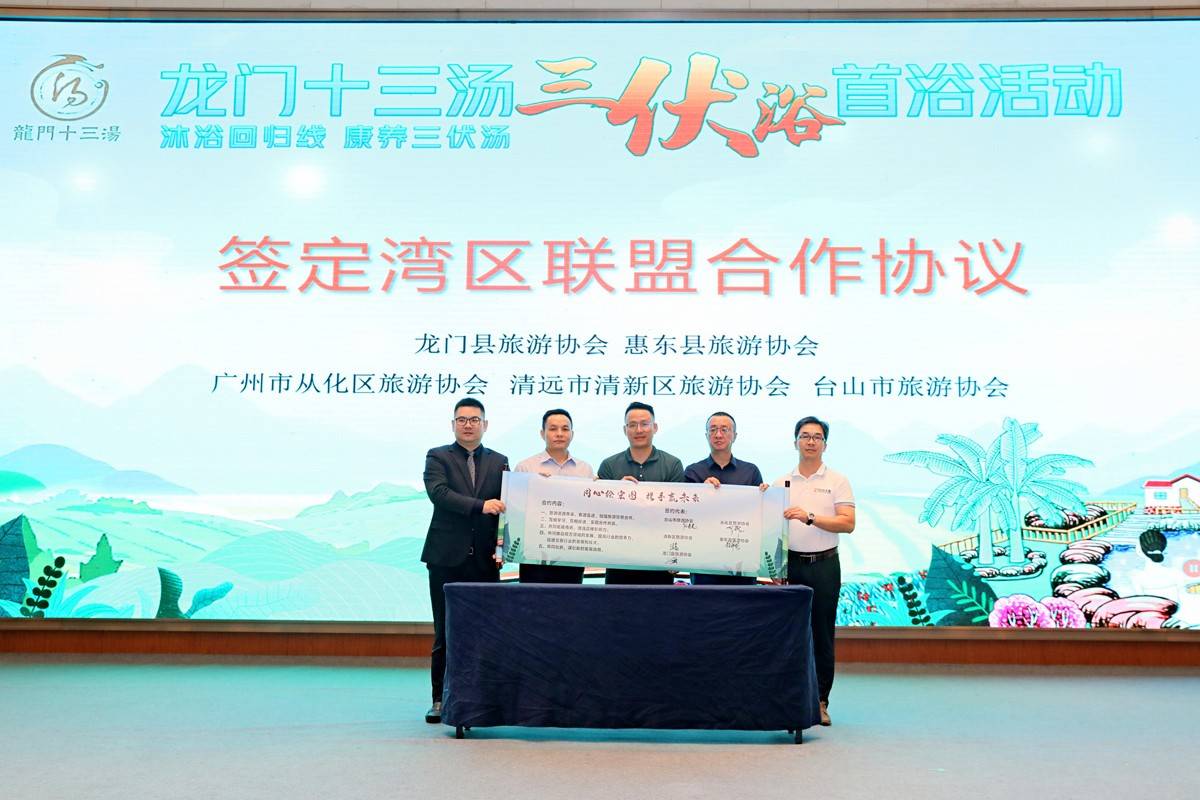 扩大开放促共享,合作发展促共赢。为贯彻落实《粤港澳大湾区发展规划纲要》,深化粤港澳大湾区在文化和旅游领域合作,共建人文湾区和休闲湾区,活动现场举行龙门县、台山市、从化区、清新区、惠东县的旅游协会签定湾区联盟合作协议。