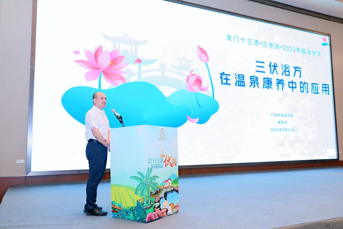 活动现场,龙门县温泉康养产业发展顾问,广州中医药大学副研究员、针灸推拿学硕导林良才为大家带来精彩的演讲,他用丰富的中医药学知识,结合龙门温泉特色,研究出独特的沐浴方 ——“龙门十三汤•三伏浴方”,向大家推介时令节气泡泉养生方式。