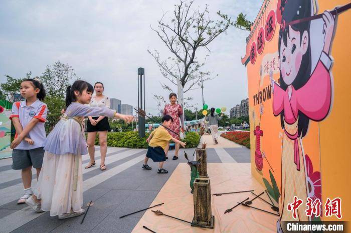 民众端午游园,参与投壶游戏。 项静菊 摄