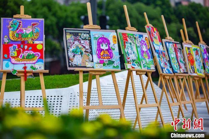 图为市集现场展出的有关端午民俗的儿童画。 项静菊 摄