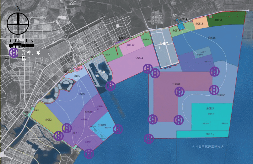 项目计划以17.83平方公里牡蛎礁生境和5.4平方公里遗鸥栖息地为两大生态基底,打通景观廊道、串联周边景区,建立一条长了33公里的滨海景观长廊,在景观长廊周边均衡布置5个渔港(游艇)码头、4个配套综合服务区、3个生态休闲区、3个垂钓园、2个养殖区。