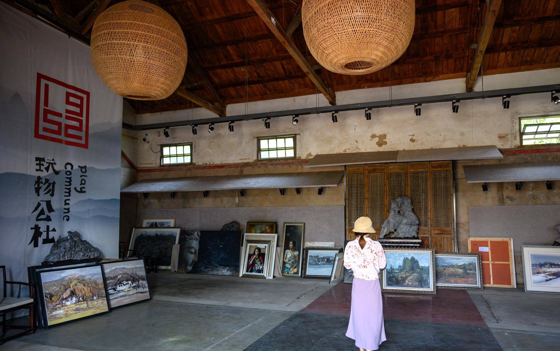 在粮仓中陈列有不少的画作作品,无异于走进了一处艺术殿堂之中,墙壁基本保持了原来的模样,上面斑驳的痕迹仍在,诉说着曾经桑仓而辉煌的历史。