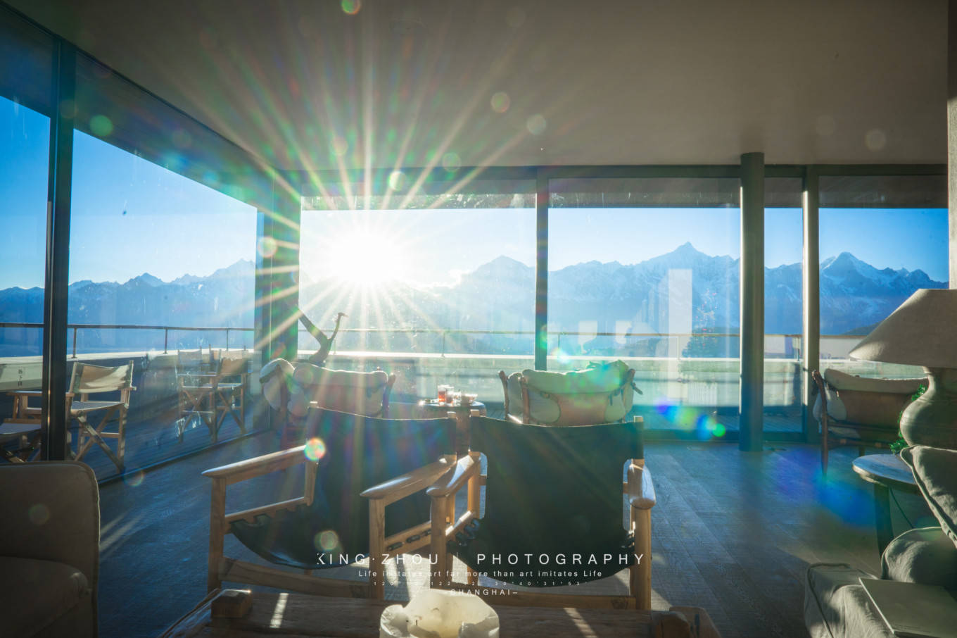 沐浴着阳光看着窗外的雪山,这一刻曾经憧憬了很多次