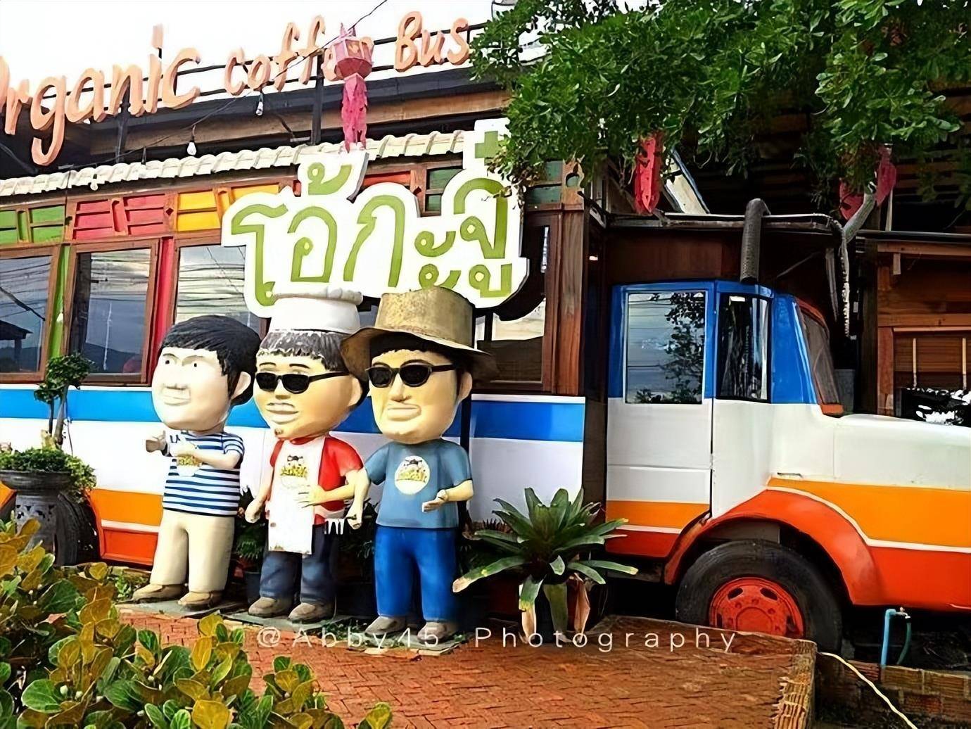 有一家店叫OrganicCoffee,超级有意思。店牌是门口的娃娃三叔。它的所有成分都是由他们的有机农场生产的。餐厅后面可以免费参观他们巨大的蔬菜大棚,犹如梦幻世界,非常有趣。