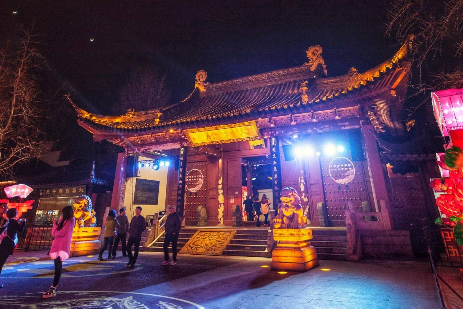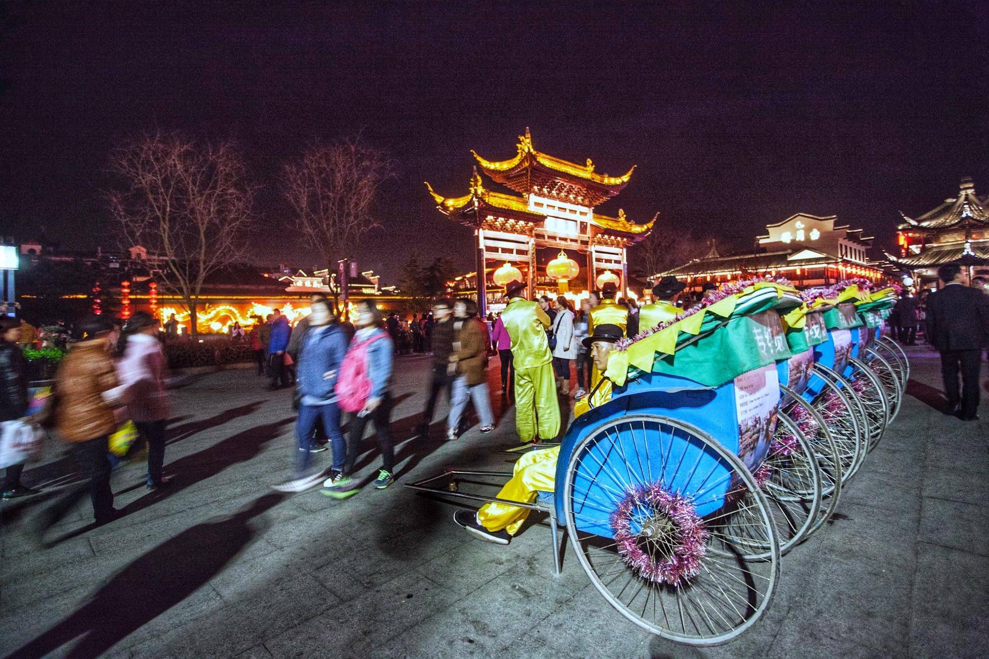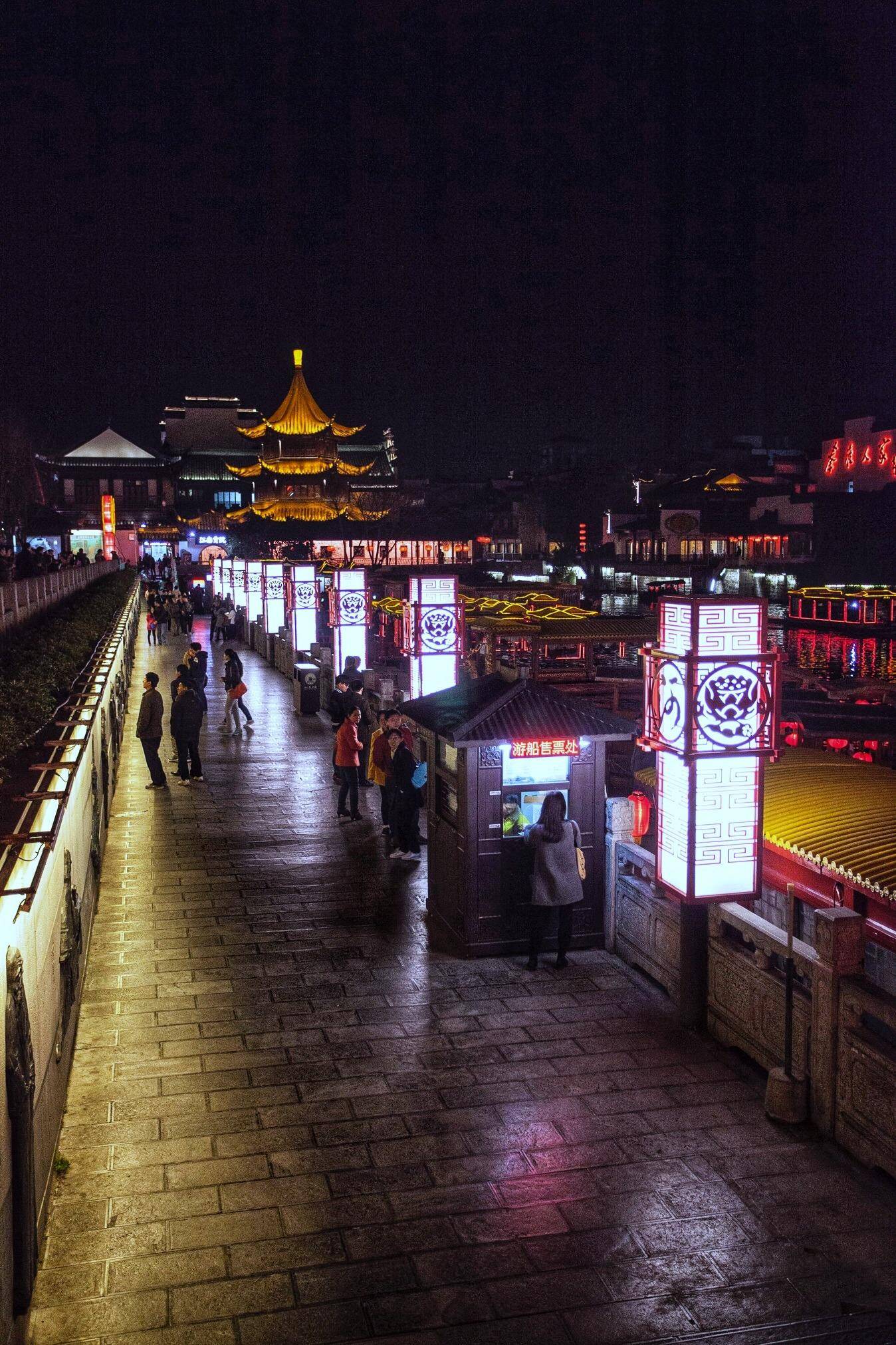 在南京欣赏秦淮河最美的景色,一定是在春天的傍晚。虽无“六朝之域,金尘聚处”之说,也只是在这暖和的季节,每日点烛之后,夫子庙前的河水面也是五光十色,透着“我们的历史文化第一河”的烟火感,其他季节可能会少了些浓烈和大气。显然晚上的游客比白天多。