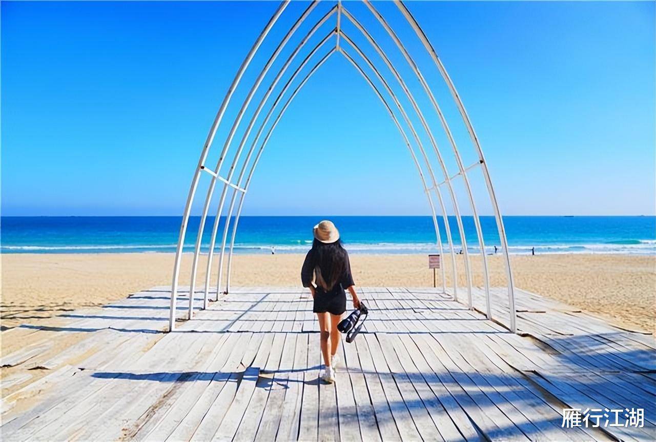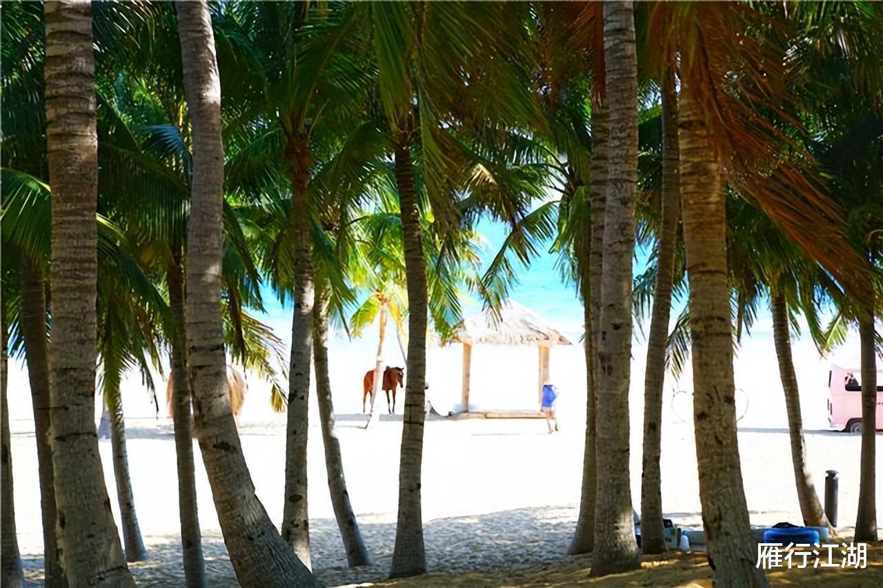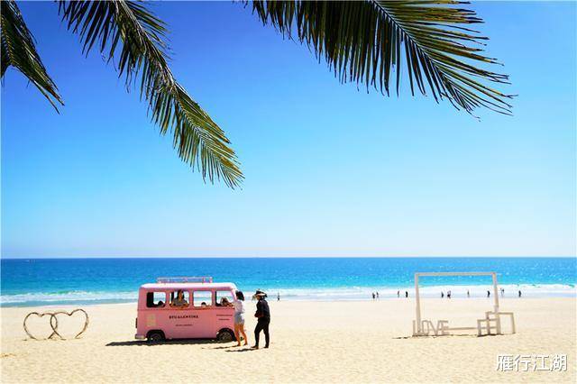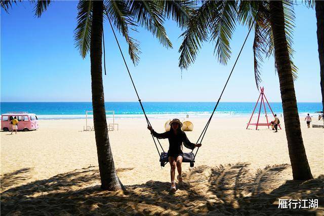 椰林间的大秋千,粉色的沙滩车,在碧海蓝天的衬托下尽显浪漫时尚。妹子们可以在这里拍照很久。我来的时候,游客不多。应该是因为人气不高吧。是的,不过个人觉得这里的海真的很纯净,和大家合个影也不错。