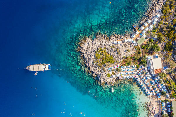 当你把路线转到土耳其 Riviera(里维埃拉)的Antalya(安塔利亚)时,你会发现土耳其最受欢迎的潜水点。该地区的15个潜水点以其多彩的水下动物群而脱颖而出。卡什拥有水下暗礁、岩石区和沉船,为潜水者提供观察特有物种的独特体验。