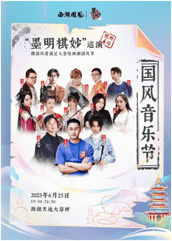 6月23日晚上7点30分至9点30分,西湖国风X“墨明棋妙”巡演杭州站将在西湖天地大草坪准时开唱。届时,ediq、音频怪物、蔡翊昇等12位古风歌手,轮番献艺,为大家带来近30首歌曲。