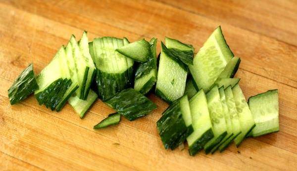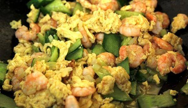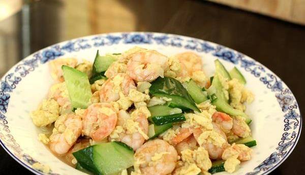 原料:鸡蛋3个,虾仁100克,黄瓜150克。