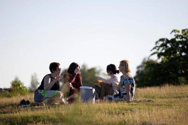 2022年6月24日,在芬兰赫尔辛基卡伊沃公园,人们结伴庆祝仲夏节。仲夏节是芬兰十分重要的节日之一,也是芬兰公共假日之一,人们通常与亲朋好友共同庆祝。新华社发(马蒂·马蒂凯宁摄)
