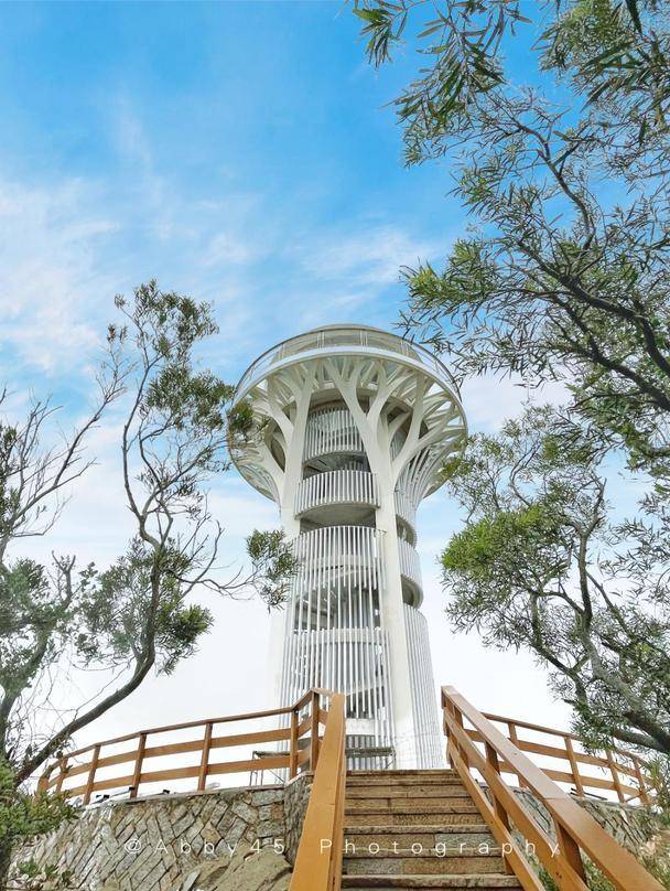 而且在南盘村还有一个专门的观景台——南盘塔,坐落在平潭综合实验区南盘村内的一座山顶上,高约19米。环形观景平台就在塔顶,拥有360度观景视野。这样不需要无人机,也可以俯瞰山脚下的南盘村和大安底海域,天气好的时候,及远处的猫头乾自然村也尽收眼底。
