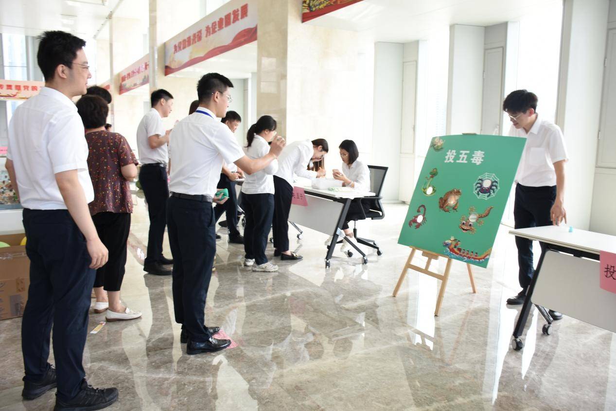 活动现场由游戏区、茶歇区、奖品兑换区三大区域组成,设置“粽”横四海、“粽”头戏、投五毒、编制艾草花束等9款趣味小游戏,大家踊跃参与,在欢声笑语和趣味横生的游戏体验中感受传统文化魅力。