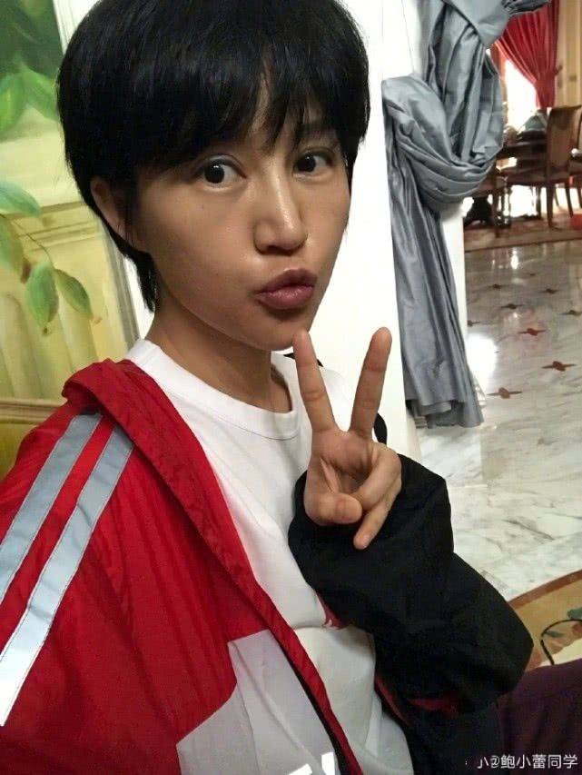 照片是她自己的自拍。感觉她此时瘦了不少,整个人看起来没有化妆。拍出来的造型会显得比较中性,而且虽然皮肤看起来比较紧致,但是面对镜头的时候,还是感觉有点油腻。
