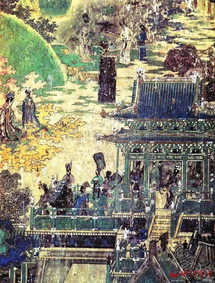 画面中,有头戴冠冕、身着长袍的王子,焚香祈祷的王后;有嬉戏玩耍的儿童,酒楼市井里的说唱卖艺者;还有撑伞的、捧鸟笼的凡夫俗子,俨然一幅幅生动的古代宫廷生活图、古代市井图。豪华宫殿、楼阁、古塔、作坊、民居各类建筑应有尽有,无不体现出画师高超的技艺。