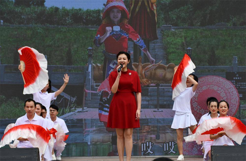 6月22日上午,禾洞镇民族团结广场人头攒动,大家都被阵阵锣鼓声所吸引,穿着民族服装的演员伴随欢快的曲调,唱诵着十二节气农活赞歌。