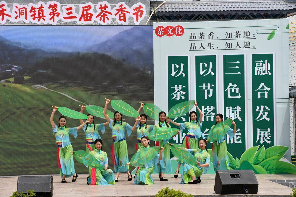洗杯烫盏、优雅冲泡、分杯奉茶……茶文化汇演《茶香满禾洞》中,演员灵巧的双手在茶水间轻盈流转,精湛的茶艺不仅展现了禾洞茶的色、香、味、形,更展现了中国茶文化的博大精深。而诗歌朗诵《香飘山外禾洞茶》深情讲述了60年前知识青年到禾洞种茶,到如今茶叶成为禾洞优势产业的历史故事。广场舞《茶山姑娘》、歌舞《山歌悠悠采茶忙》表现了禾洞采茶姑娘的劳动景象,伴随着悠悠山歌,指尖在茶树上飞舞,一片片茶芽落入茶篓里,呈现出劳动的快乐与丰收的喜悦。