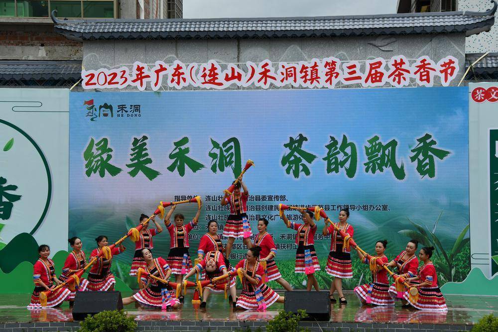 六月的禾洞,茶香万里。6月22日端午佳节,伴随着悠扬的采茶歌,2023年广东(连山)禾洞镇第三届茶香节隆重开幕。一时间,地处粤湘交界的革命老区游人如织;富有浓郁茶文化气息的采茶舞、百年传承非遗展演舞卧狮、独具民族特色的瑶族小长鼓舞、让人热血沸腾的花式跳绳等各类歌舞轮番上演,引得游客群众争相观看,好不热闹。