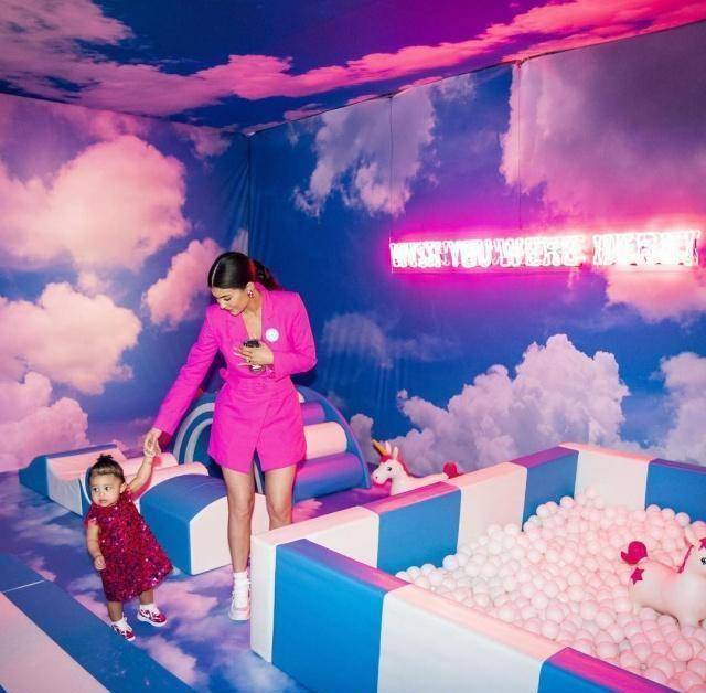 还记得,当时女儿一出生便引来1300万的点赞数,直接打破了数位好莱坞名人记录。而今年正是Stormi一岁的生日,而这场生日庆祝派对也依旧比往常还要夸张。身为妈妈的金小妹似乎更为疯狂,直接为女儿举办一个主题乐园来为爱女庆祝一岁生日。