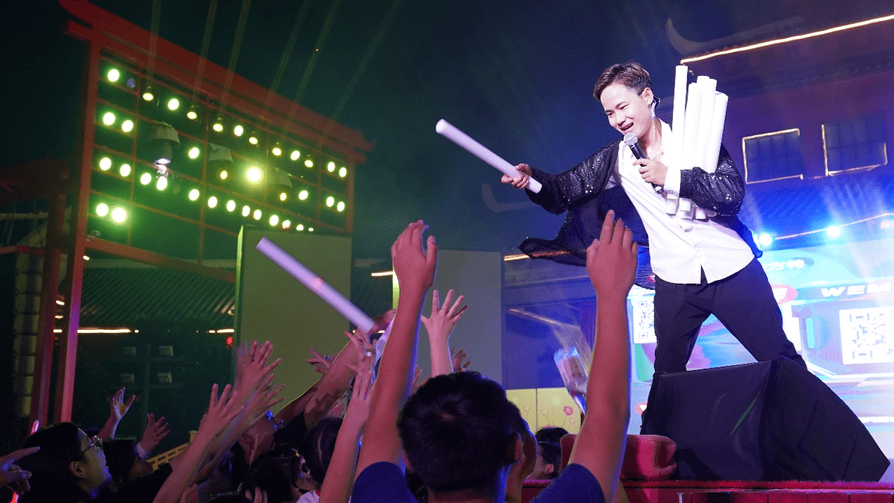 夜幕降临,“超级电音夜”劲爆开场,各种新潮的电音表演轮番上场,将全场气氛烘托到最高,现场游客或拍照留念,或沉浸表演,乐享美妙的夏日时刻。