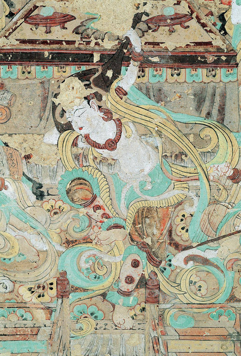 莫高窟第112窟的反弹琵琶图。敦煌研究院供图