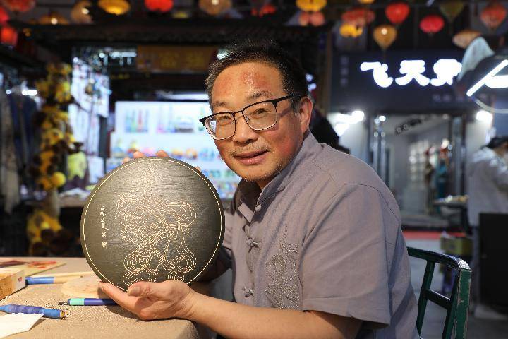 湖南人申洪杰迁居敦煌近20年,经营着一家展现敦煌壁画神韵的木雕画店,成了“新敦煌人”。