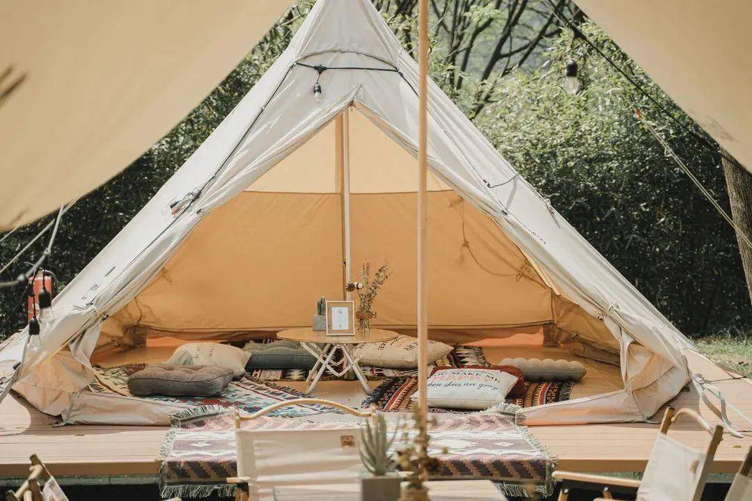 帐篷高大宽敞,住起来不觉得拥挤,里面的布置简单温馨,满满的轻奢风。在这里,和朋友一起住一顶帐篷,围着篝火有一搭没一搭地聊天,然后枕着头顶的星空入眠……会发现,理想的生活离我们并不远。