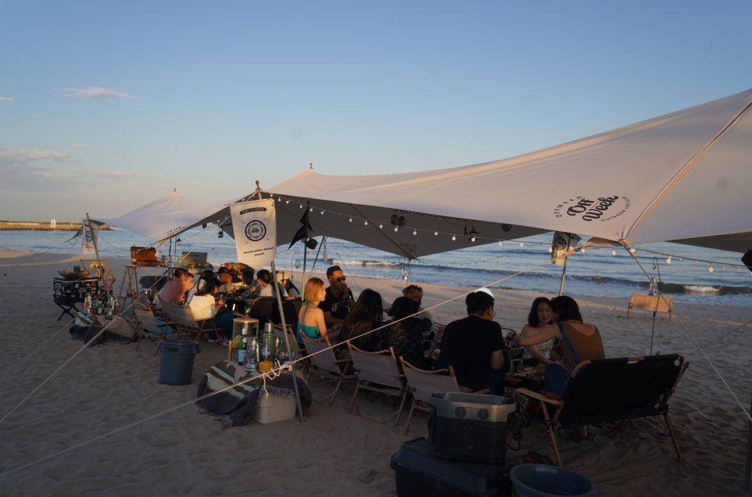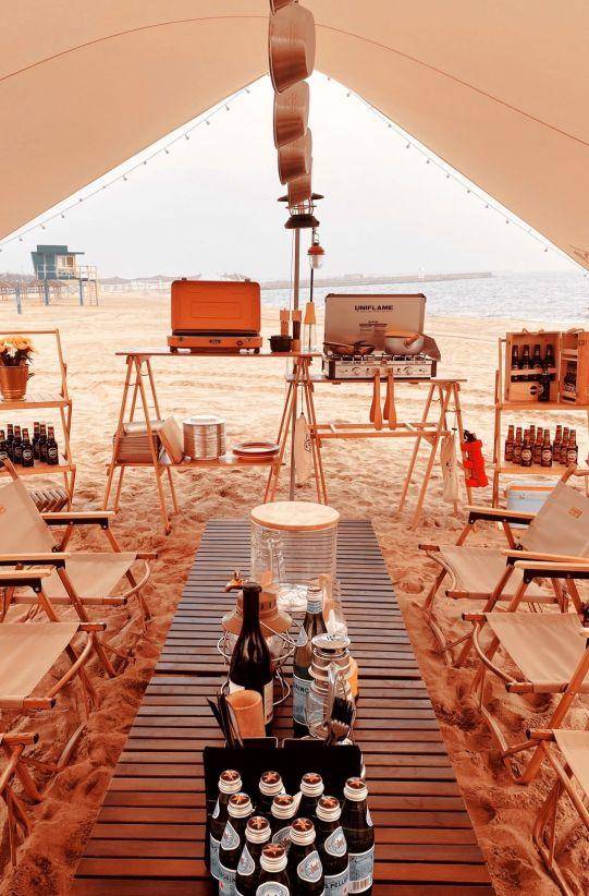 乐岛海洋王国景区,掀起了一场海滨沙滩露营热潮。在这里和朋友将营区提供的帐篷亲手搭建起来,与认识或不认识的人结成一个荒野村落。晚上吹着海风,吃着烤肉,喝着啤酒,围坐在篝火边唱歌跳舞,或闲坐发呆,或数星星,或钻进帐篷小天地看书听音乐——释放压力、找到自己~