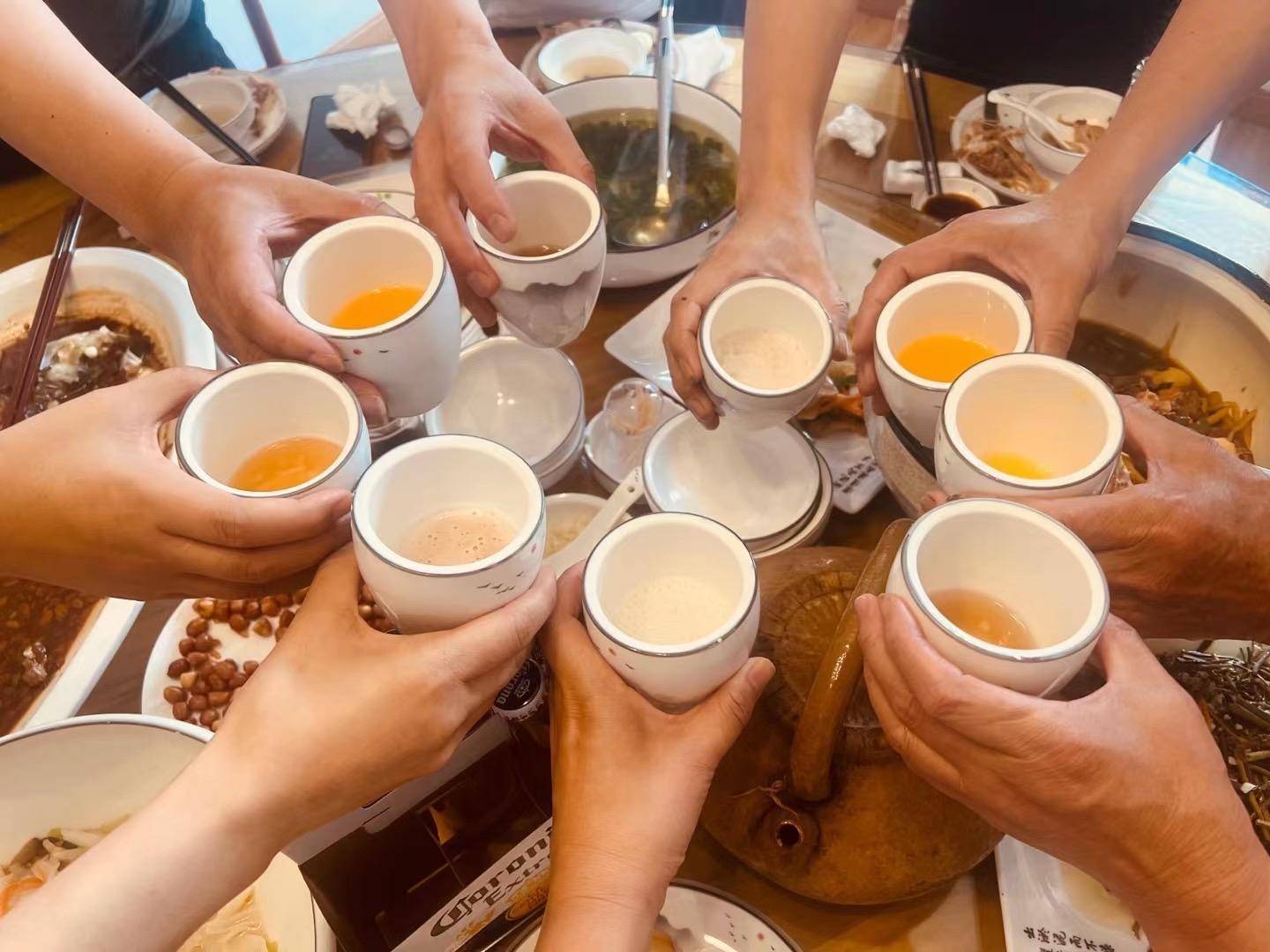 对了,温州优米哥,海瓜子,黄山鱼,还有泰顺的农家菜,我们的酒量大增。我们是唯一喝红酒的人。我们一次喝了四瓶,量很大。