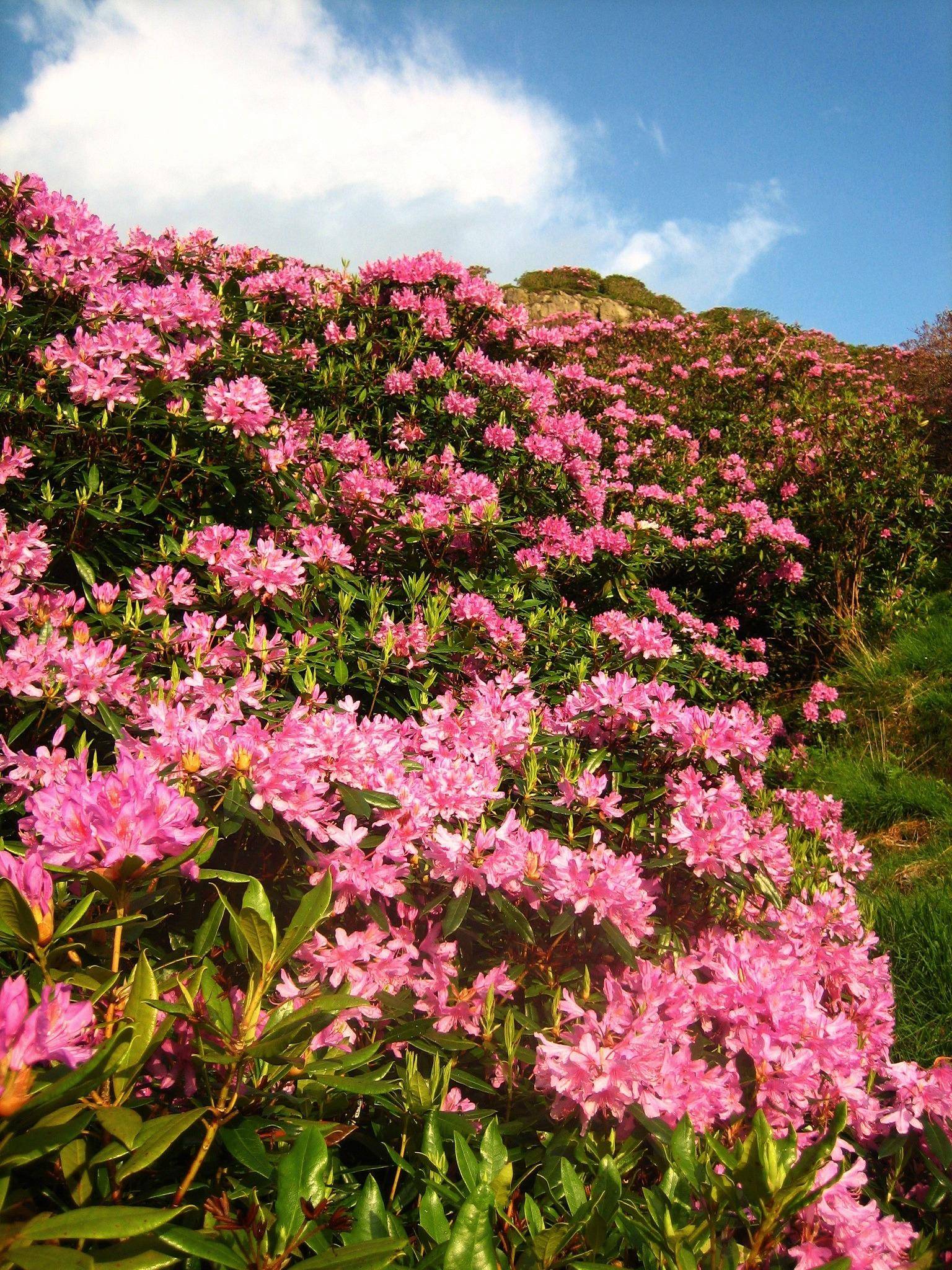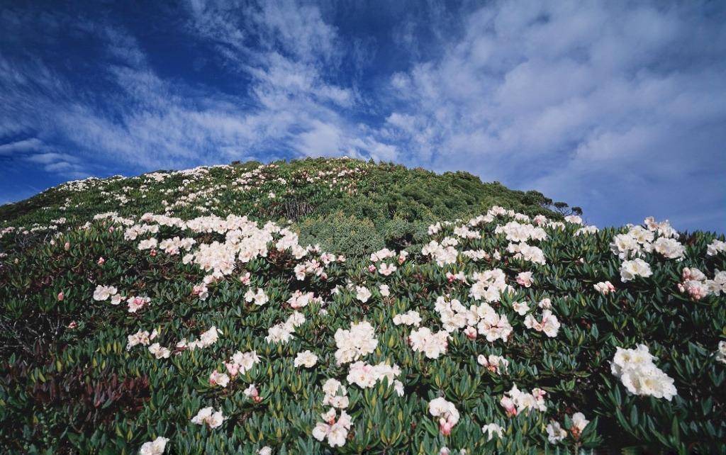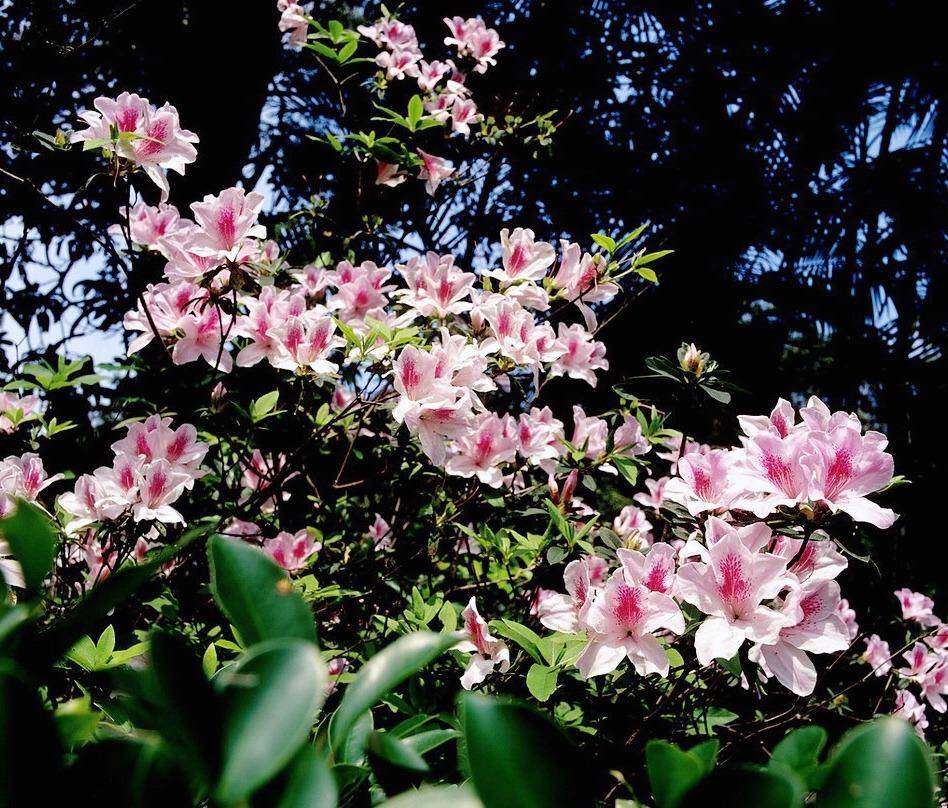 笔架山上的杜鹃呈树形,每棵树高近20米,开出的花呈五角形。大普丁花如碗口,小普丁花如钱币。有些树甚至可以开出几种不同颜色的花。除了杜鹃花,笔架山上还生长着许多粉红色的桃花。从高处缆车下来,绿中带红,红中带绿,红绿交相辉映,非常漂亮。