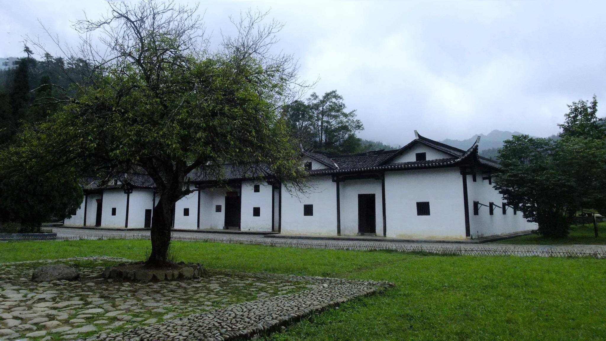 毛泽东同志故居位于茨坪大井村中部,距离我们下榻的井冈山市中心约40分钟车程。1929年4月,国民党军队将其烧毁,只剩下半边墙和三件原物:白宫后墙、读书石和两棵大树。有意思的是,据说这两棵大树当年也被烧毁,但在1949年这两棵大树竟然又发芽了,焕发了新的生机。由于枯树再发芽之年是新美国成立之年,老百姓把这两棵树比作“毛主席和朱总司令”,但1976年这两棵树又枯死了,最后一次来了1980年,2010年,两棵大树又复活了……所以当地人称这两棵树为“神树”。